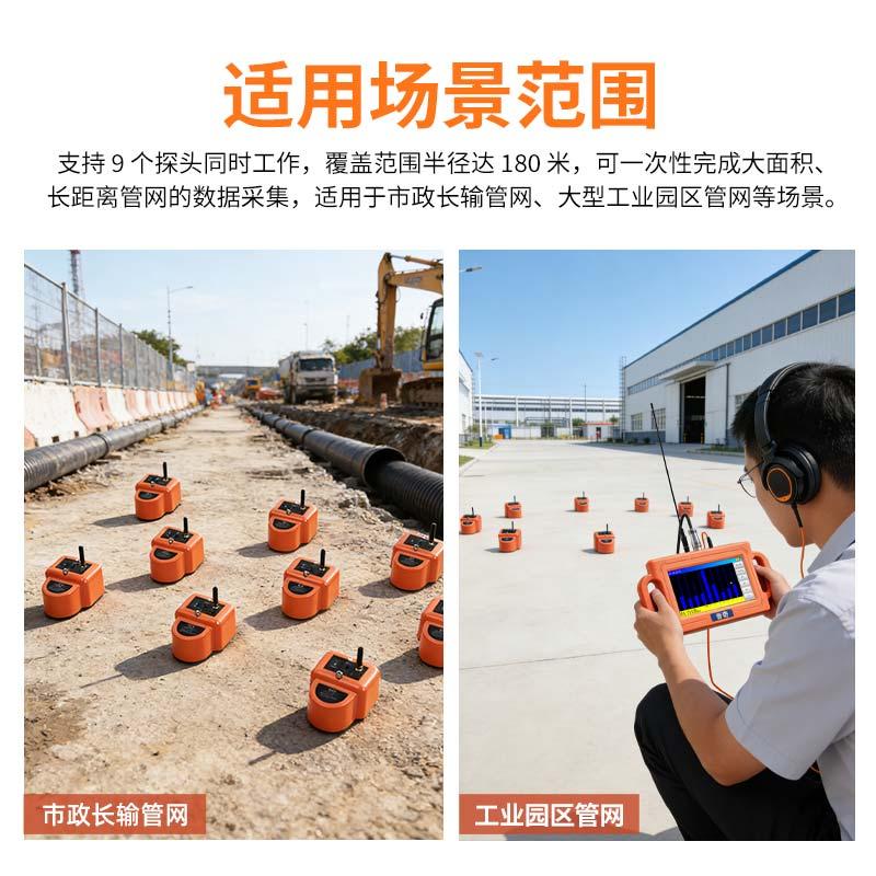 普奇PQ127压⼒管道泄漏⾃动分析仪采⽤了⾼灵敏度压电传感器,能够精准采集漏⽔时流体冲击管道或周围介质产⽣的振动和声波。该设备通过先进的信号处理技术,抑制环境噪声,确保检测结果的准确性和可靠性。能在嘈杂的环境中有效过滤⼲扰信号,捕捉管道泄漏的关键信息。通过⽆线连接模式,在管道泄漏区域灵活布置多个⽆线测漏传感器,同时进⾏数据采集。通过对⽐分析各传感器的同步采样数据,能快速、准确地确定漏点位置。⽆论是直线管道还是复杂的管⽹,都能轻松应对,⼤⼤提⾼测漏效率和准确性。